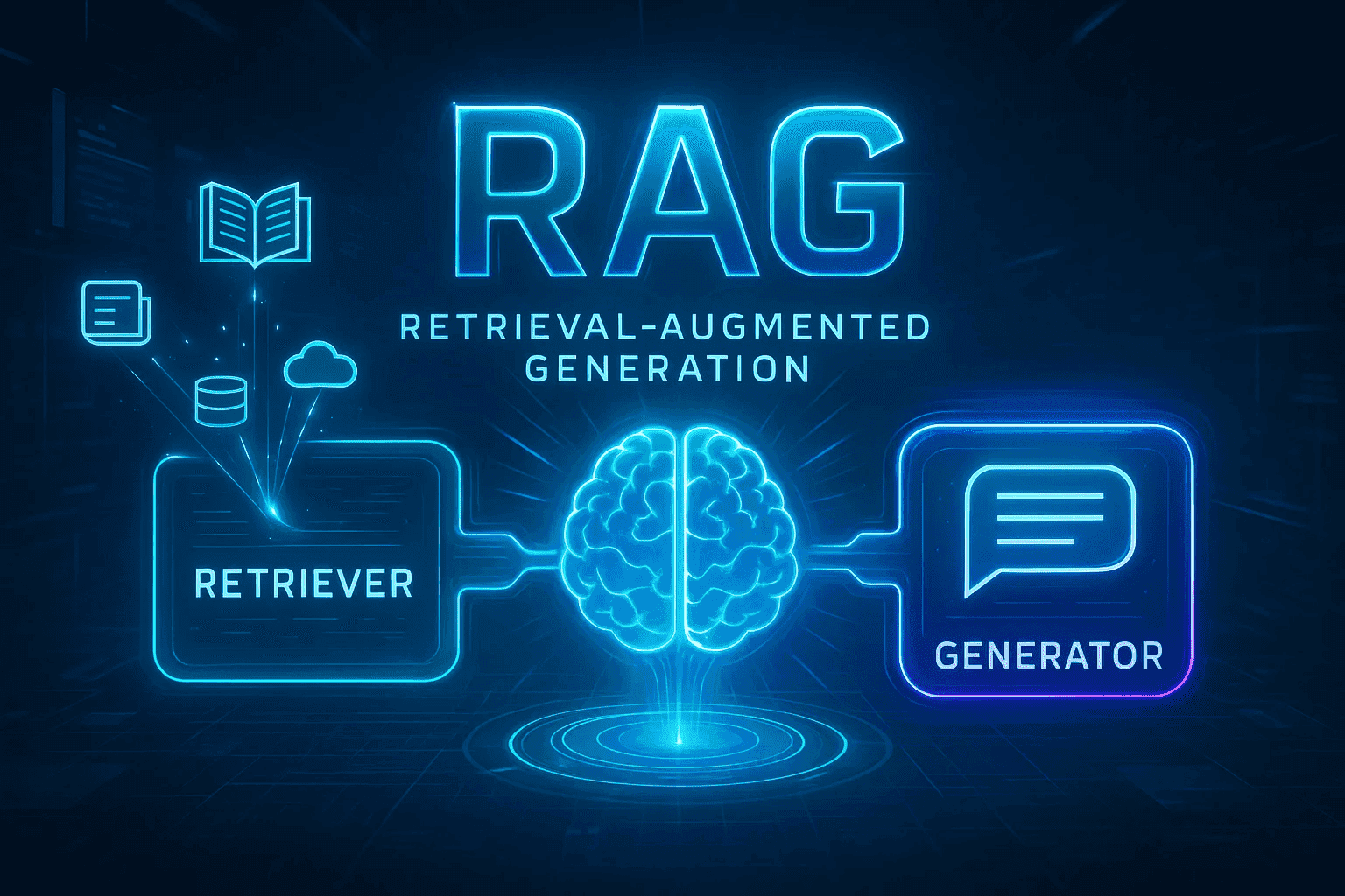 Retrieval-Augmented Generation (RAG) as an advanced AI technology that combines generative AI with real-time retrieval from company-specific knowledge bases and data providing accurate, up-to-date, and context-aware responses grounded in real business data. Different sources: upload documents, Website, Database